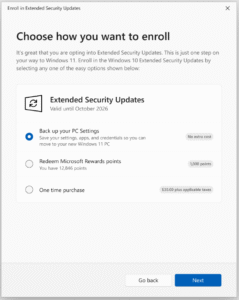There are a few hoops to jump through to get this extension if you are a consumer and not a business, but it really does work and those users who were worried their machines would be exposed can now rest easy for another 12 months. What is this exactly? Well they call it the Extended Security Updates (ESU) program (https://learn.microsoft.com/en-us/windows/whats-new/extended-security-updates): providing a mechanism that extends security updates until October 2026. This program is free for users who sync their PC settings to the cloud via a Microsoft account using the new Windows Backup app. For those who don’t want to use the backup feature, the ESU program is available for a fee, or users can redeem 1,000 Microsoft Rewards points for it.