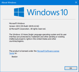 ESU is rolling out to all Windows 10 devices that are running Windows 10, version 22H2. To easily get your version of Windows, click on start and type winver and press enter or alternatively, press the windows key + R. In the popup box that comes out, type winver and press enter. The version of the operating system you have will be displayed.