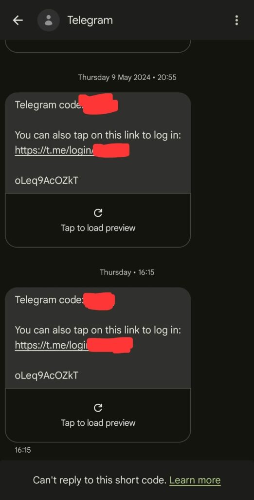 • If you don’t realise that you speaking to a hacker, you will give them the code thinking that you don’t use Telegram anymore